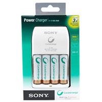 Sony Power Charger's compact design with flip down plug and worldwide voltage allows for charging batteries anywhere. Can charge up to 4 AA or 4 AAA rechargeable Ni-MH batteries. Includes 4 AA Pre-charged, ready-to-use right out of the package batteries. Lasts 3x longer than Alkaline.Available at Amazon Check Price Now!